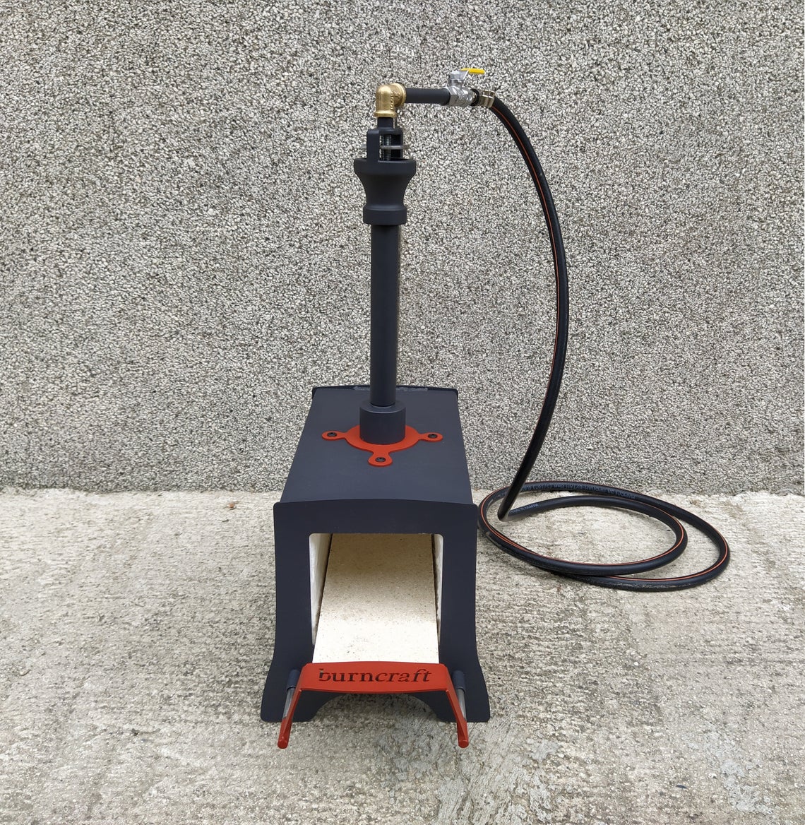 The Burncraft burner comes with a precision cast steel head that draws in a lot of air thanks to precise proportions to create a very effective venturi effect. The burner burns so efficiently that it does not require forced air supply.